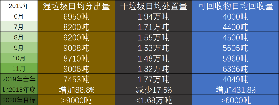 以干垃圾处置量为例,今年5月的15351吨/日,比去年的1.77万吨/日减少了13.4%,也符合今年干垃圾处置量控制在1.68万吨/日以下的要求。同时,今年5月的可回收物回收量也达到了今年确保可回收物回收量在6000吨/日以上的目标。